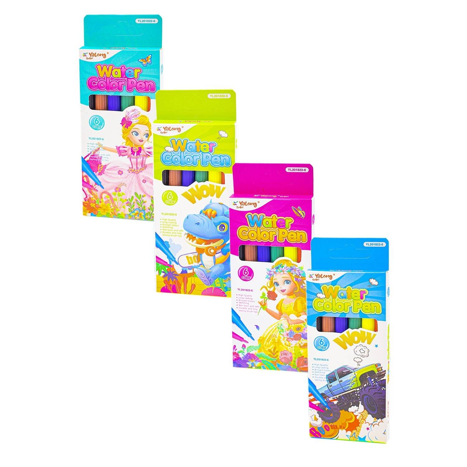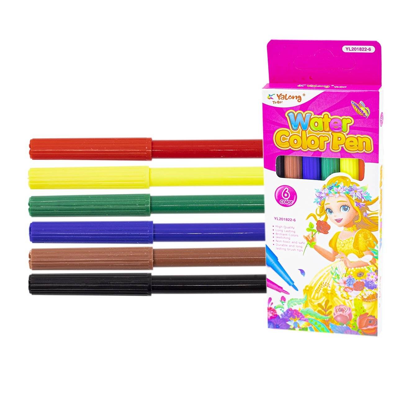 Фломастеры 6 цветов Yalong, Softness, круглый корпус, упаковка картонная, европодвес