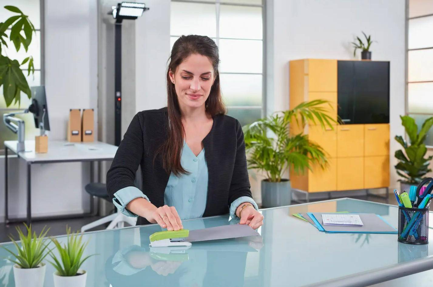 Степлер Novus зеленого цвета имеет встроенный металлический антистеплер и скрепляет до 15 листов. Вмещает до 100 скоб #10. Глубина закладки бумаги до 37 мм. Механизм скрепления выполнен из прочного металла.