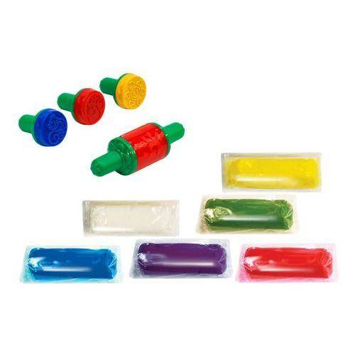 Набор состоит из разноцветного теста для лепкииз 6 цветов, скалки для раскатывания лепёшек и фигурных штампиков (3 штук). Всё упаковано в удобный пластмассовый стаканчик. Тесто для лепки приятное на ощупь, эластичное, легко разминается. Оно абсолютно безопасно для малышей.